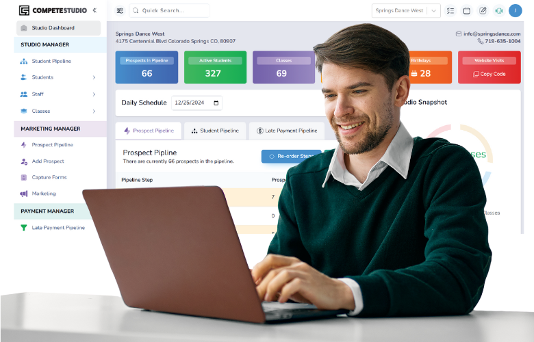 You don't need to be a marketing expert. Compete Studio guides you through the marketing, ernollment, and upgrading of your members with tested strategies that are easy to implement in your busines.